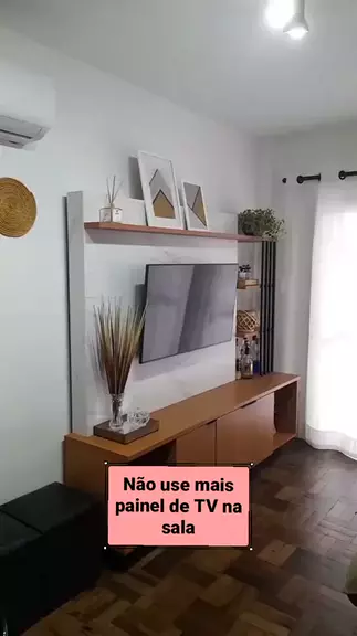 Não invista em painel de TV pronto para sua sala. Se puder faça um painel do tamanho da parede todaou use um rack com prateleira, como no meu caso. Dessa forma terá mais amplitude no espaço. #decoração #casa #sala #homedecor #dicasdecasa