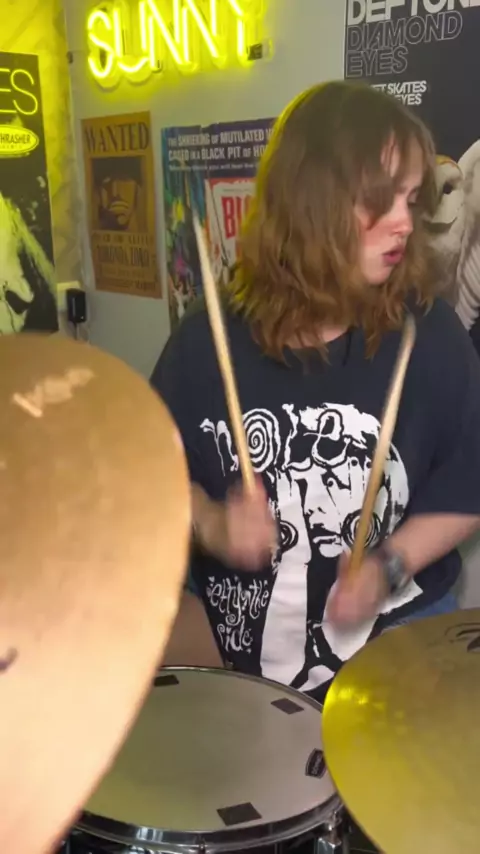 #Repost @roxslinger Lunes de deftones 🖤 hoy tocó SWERVE CITY 😭🖤 No se porque ayer me silenciaron el vídeo de Rammstein :( espero no pase con este jaja . . . . #fyp #drummer #drummergirl #metaldrummer music head headgirl headfemale band