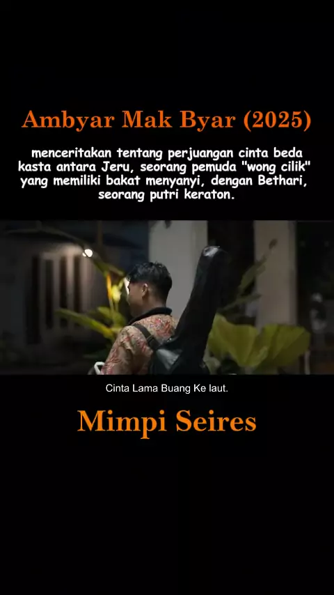 menceritakan tentang perjuangan cinta beda kasta antara Jeru, seorang pemuda "wong cilik" yang memiliki bakat menyanyi, dengan Bethari, seorang putri keraton. #recomendation #mimpiseries #film#&tv #AmbyarMakByar #filmindonesia