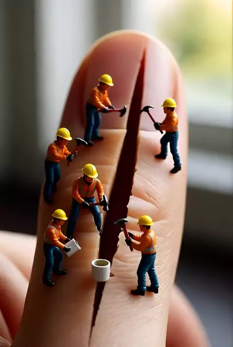 Tiny workers ⛏️ mining a fingertip crack! ✨ #tinyworld #nails #miniworkers