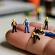 Tiny workers ⛏️ mining a fingertip crack! ✨ #tinyworld #nails #miniworkers