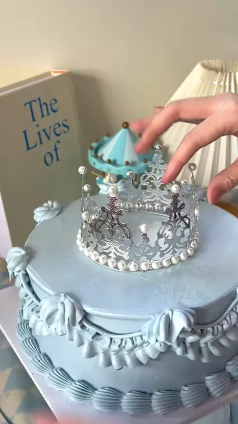 the prettiest vintage cake for the lovely one’s 💙✨👑 #vintagecake #koreancake # #cutecake