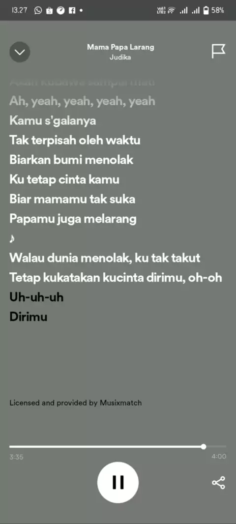 Membalas @ansadzhrtssta Done ya kak, thanks for the request..... Soo let's sing together with Judika - Mama Papa Larang........#judika#mamapapalarang#mamapapalarangjudika#nyanyibareng#spotipy2023#dongggggggg#liriklagu#liriklaguviral#bismillah#samlanfamily#adharizqaridha#trendliriklagu#StoryLirikLagu#MusikStory#bestsongever#beautifullyrics#RecommendedSongs#LaguDenganLirik#MyFavouriteLyrics#requestlagu#LirikLaguPOP#songlyrics