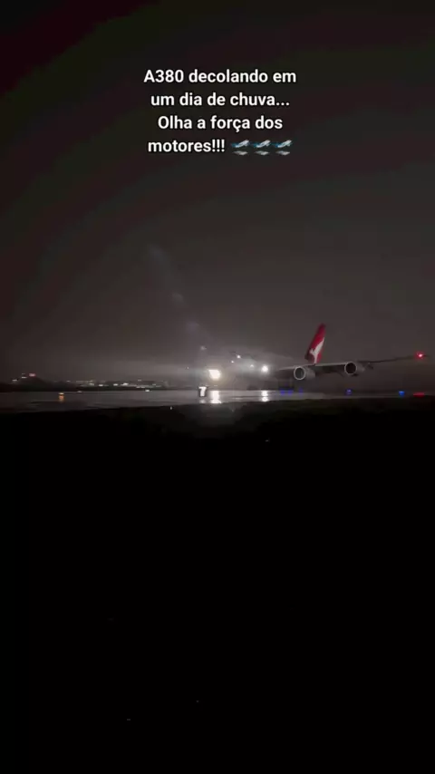 A380 taking off in a rainy day... Look at the engine power #Aviation #A380 #Qantas