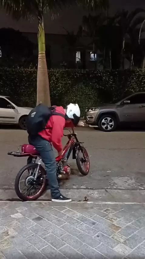 Mulher Rindo que a mobylette não quer ligar !! #amigos #2tempos #2rodas