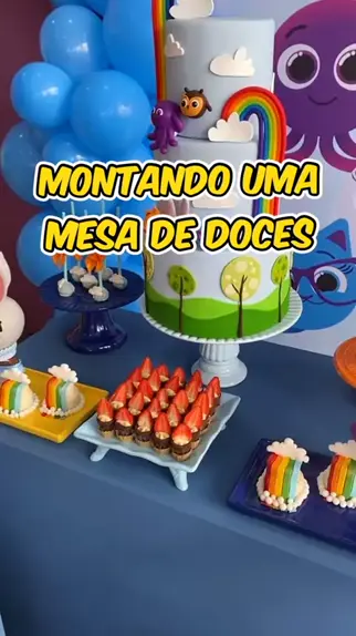 Mesa infantil com tema bolo fofo! Gostaram? 💓 #confeitaria #mesadedoces #docinhos #festainfantil