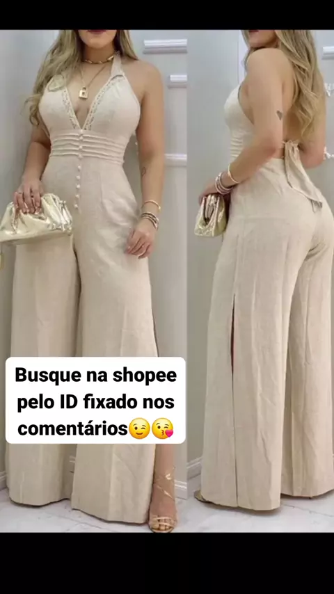 Macacão Feminino Longo com renda e Decote nas costas #macacãolongo #macacão #estilo #MODA #elegante