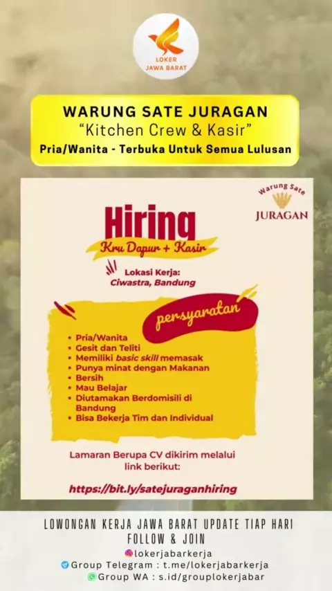 Lowongan Kerja Jawa Barat Terbaru. Posisi: Kitchen Crew & Kasir Lokasi: Bandung#lokerkitchencrew#lokerkitchen#lokercook#lokerkasir#lokerbandung#lokerbandungterbaru#infolokerbandung#lokerbandung2024#lokerkuliner#lokerfnb#carikerja2024#lokerjabar#lokerjabar2024#lokerjawabarat#lokerjawabaratterbaru#lowongankerja#lokerjabarupdate#lowongankerja2024#loker2024#infolokerjabar#lokersmp#lokersma#lokersmaterbaru#lokersmk#lokersmkterbaru#lokersmasmk