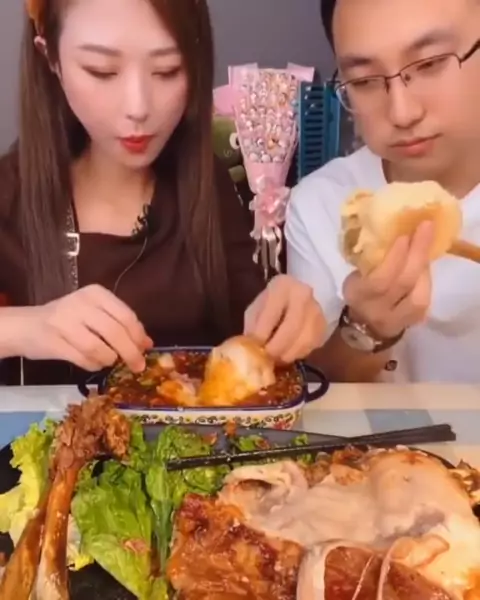 this couple ate very juicy pork ribs #delicious #eatingshow #porkribs #porkbelly