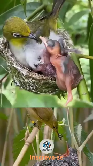 filhote de Cuco expulsa o filho legítimo do Minho. #Natureza #cuco #asasino🤬 #passaro #mundoselvagem