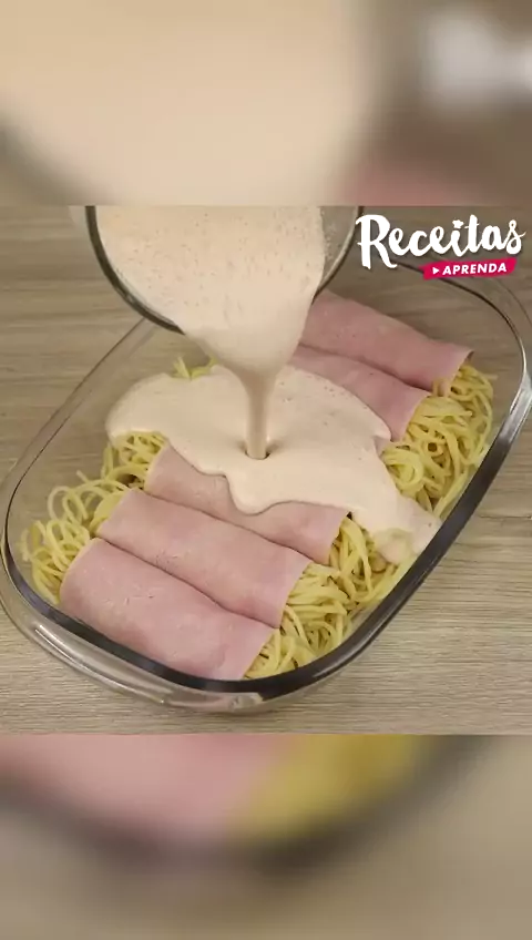 Enrolado de macarrão com presunto e queijo.