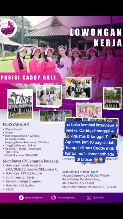 #caadyviral #caddycantikdanramah🙏 #mdfmanagement #golfindonesia⛳ #loker2023 ##golf #lapangangolf #lokercaddy #lokerbogorterbaru #lokererbaru #lowongankerja #loker #lokerjakarta #yayasancaddygolf #managementcaddygolf