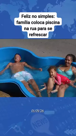 Feliz no simples: família coloca piscina na rua para se refrescar. #ultimasnoticias #Vem2026NoKwai