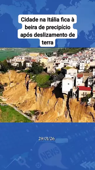 Cidade na Itália fica à beira de precipício após deslizamento de terra. #ultimasnoticias