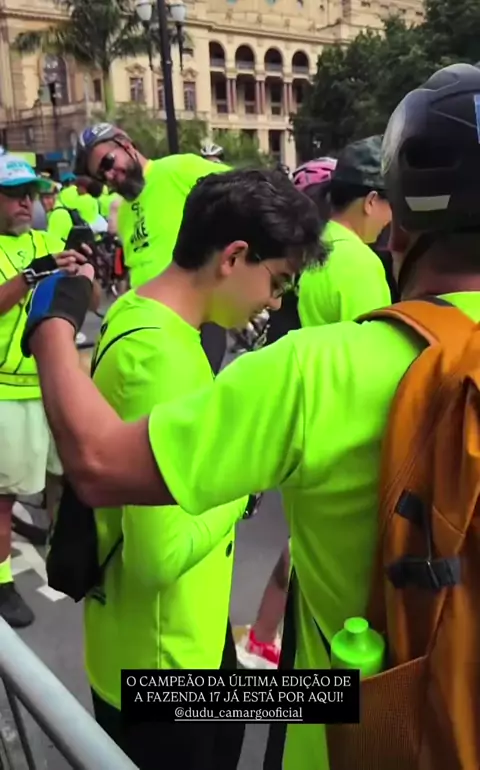 Dudu tirando fotos com os fãs no evento Bora de bike