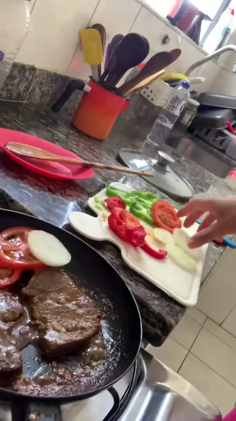 Almoço rápido 👩🍳😂🩷. #fy #Explore #Comida #Bife #cozinhando