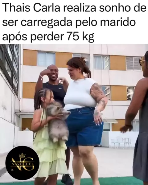Que história inspiradora! 😭❤️ A dançarina e influenciadora Thais Carla viveu um momento de pura emoção e vitória! Ser carregada pelo marido, Israel Reis, após conquistar a marca incrível de 75 kg perdidos é a celebração perfeita! Ver a contagem regressiva feita pelas filhas, Maria Clara e Eva, torna tudo ainda mais emocionante! 😍 A cirurgia bariátrica em abril de 2025 foi o começo de uma jornada de rotina intensa de treinos e alimentação equilibrada. #bariatrica #thaiscarla