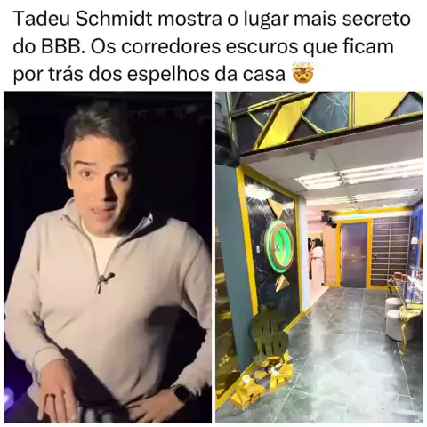 👀✨ Você sabia que o BBB tem segredos bem guardados? Tadeu Schmidt surpreendeu ao revelar os bastidores secretos do BBB 🎥🏠 e mostrou os corredores escuros que ficam por trás dos espelhos da casa 😱🪞. Uma área restrita, quase nunca vista pelo público, que deixou os fãs do reality cheios de curiosidade! Por trás das câmeras, existe muito mais do que a gente imagina… 👁️👁️ Você teria coragem de andar por esses corredores? 😬💬 Conta pra gente o que achou! ⬇️👇 #bbb #tadeuschmidt #bastidores