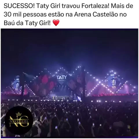 🚨 Sucesso Absoluto em Fortaleza! 🚨 A rainha Taty Girl simplesmente travou Fortaleza com o seu show espetacular! Mais de 30 mil pessoas estão reunidas na Arena Castelão no icônico Baú da Taty Girl! 💖 É muita emoção, sofrência e forró das antigas! É a prova de que o forró tá mais vivo do que nunca! Quem aí tá curtindo esse momento histórico? Conta pra gente! 👇 #tatyGirl #baudaTatyGirl #forró #Fortaleza #ArenaCastelão