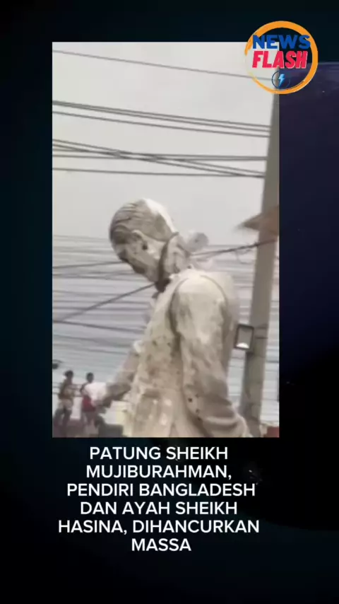 Patung Sheikh Mujiburahman, ayah Sheikh Hasina, dirobohkan massa.#bangladesh#bangladesh🇧🇩#bangladeshi