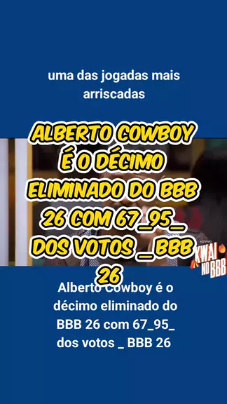 Alberto Cowboy é o décimo eliminado do BBB 26 com 67_95_ dos votos _ BBB 26 #SeleçãoBrasileira #👀BBB26 #BBB26 #maisviews #KWAINOTICIAS