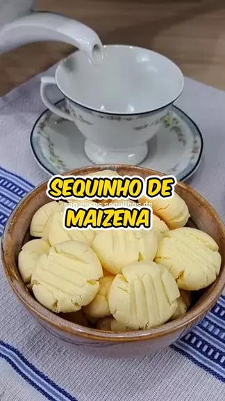 Ingredientes: 2 xícaras de amido de milho (240 g) 1/4 xícara de açúcar (50 g) 100 g de manteiga 1 gema (20 g) capacidade da xícara é de 240 ml peso é o total dos ingredientes