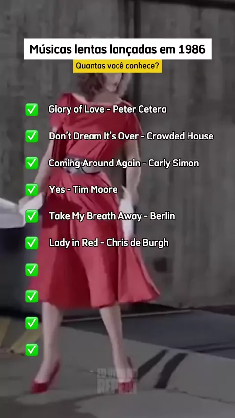 1986 foi um ano em que a música falou direto com o coração. Entre sintetizadores suaves, refrões marcantes e letras cheias de sentimento, esse ano nos presenteou com algumas das baladas mais inesquecíveis da música internacional 🎶💔✨ De “Take My Breath Away”, que embalou o romance de Top Gun, a “True Colors”, que virou hino de aceitação e sensibilidade. De “Lady in Red”, com sua atmosfera intimista, a “I’ll Be Over You”, que ecoava nas rádios e corações partidos. Tinha também a doçura de “Sweet