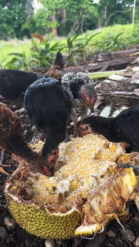🌽 Quirela gourmet com jaca 🐓Será que gostam 🐣 #vidanaroca #amazonia #galinhas #roça #simplicidade