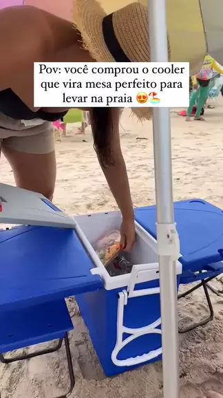 Achei o cooler que vira mesa perfeito pra levar pra praia 🏖️😍