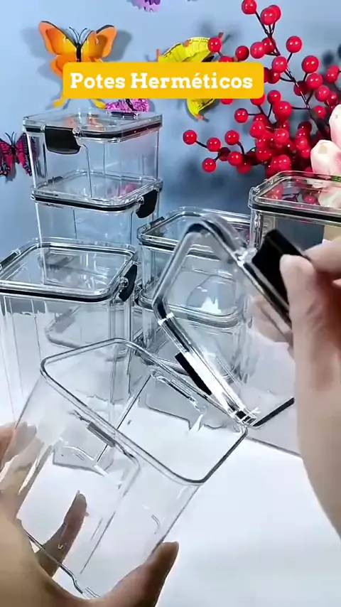MONTE SEU KIT Potes Herméticos Acrílico com Trava e Alta Vedação Empilhável Transparente Porta Alimentos de Cozinha + Etiqueta #MeBloqueiaNoKwai #BrotherDaGinástica #meunenem