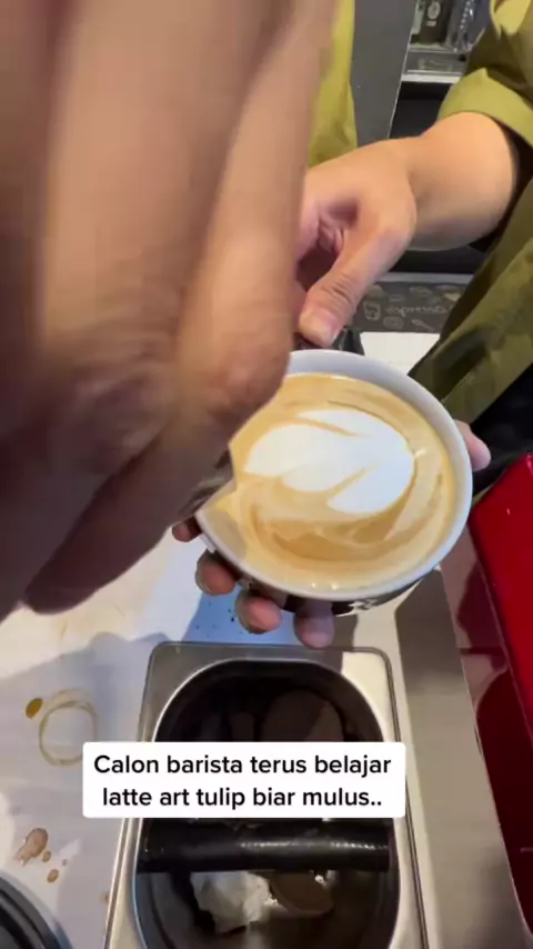 Calon barista Kopi Titan belajar terus latte art tulip biar mulus..#kopititantebet#latteart#barista#tebet#kopititan#kopi#ngopi#ngafe#cafe#coffeeshop#tempatngopi#tempatnongkrong#artlatte#baristalife#baristaproblems#lattearttutorial