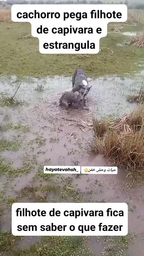 cachorro pega filhote de capivara