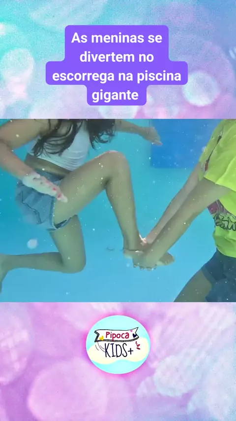 As meninas se divertem no escorrega na piscina gigante #Infantil #kids #10k ##1m #baby