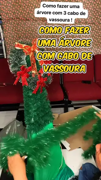 Como fazer árvore de natal com cabo de vassoura! #ClimaNatalino #nataldocriador