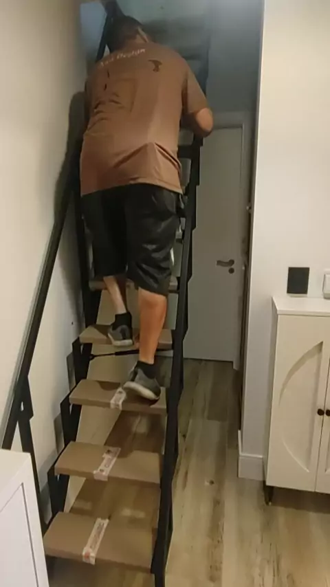 Escada em ferro retrátil e articulada. And Design Móveis - André Acosta @andreaccosta37 Venha fazer seu orçamento! (51)980605394 facebook/anddesign21 #fyp #foryoupage #casa #moveissobmedida #moveis