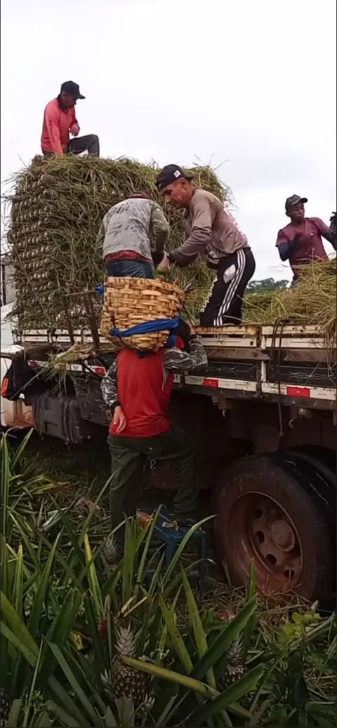 fazendo carga de abacaxi dentro da roça do proprietário José Feliciano aqui no Estado do Pará