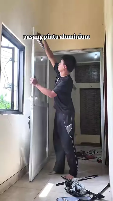 pasang pintu aluminium #aluminium #craftsman #worker #pintu #pintualuminium