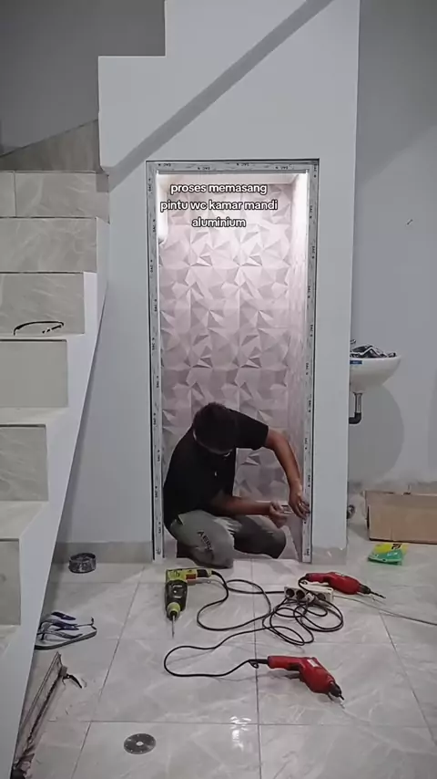 proses memasang pintu WC kamar mandi aluminium#aluminumdoor#pintualuminium#pintukamarmandi#pintuwc#pintu#aluminium#aluminum#door#bathroom#bathroomdoor