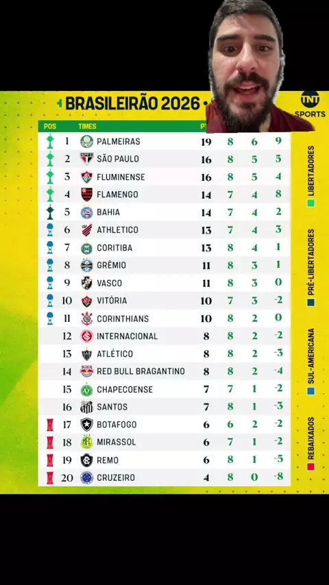 Classificação do Brasileirão após a oitava rodada #Brasileirão #kwaisports #Futebol #palpitesdiarios