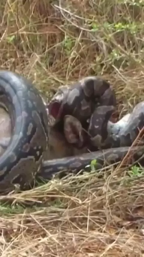 A PITON, ATÉ CONSEGUIU ABATER SUA PRESA, MAS OS CHIFRES, PARECE TER FURADO E ATRAVESSADO A SUA BOCA.