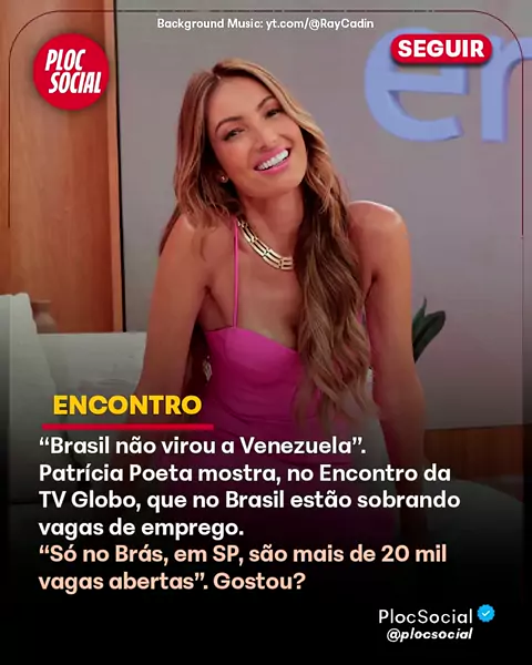 “Brasil não virou a Venezuela”. Patrícia Poeta mostra, no Encontro da TV Globo, que no Brasil estão sobrando vagas de emprego. “Só no Brás, em SP, são mais de 20 mil vagas abertas”. Gostou? #Encontro