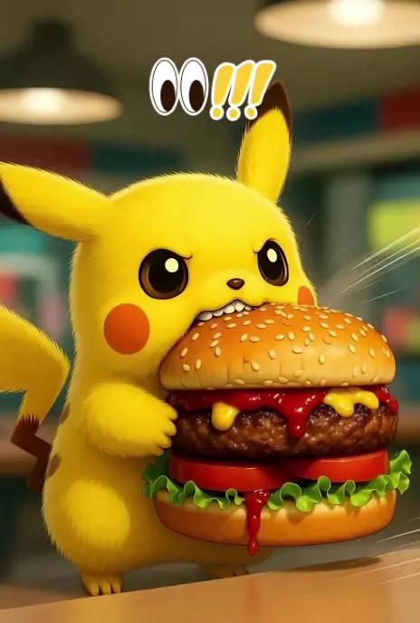 Quem mais ama hambúrguer 😍 igual o Pikachu?? #PICACHU #conquistar200k