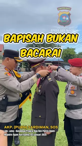 Polres Agam Gelar Upacara Purna Tugas Untuk AKP Sardiman Agam– pada hari Kamis (2/1/2024) Polres Agam menggelar upacara purna tugas untuk salah satu perwira seniornya, AKP Sardiman, S.Sos. Upacara yang dipimpin langsung oleh Kapolres Agam, AKBP Muhammad Agus Hidayat, SH. SIK., ini dihadiri oleh seluruh jajaran Polres Agam sebagai bentuk penghormatan atas pengabdian AKP Sardiman selama bertugas. #purnabaktipolri #bapisahbukanyobacarai #polisiindonesia #polresagam #kenangan2024