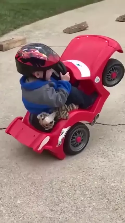 Garoto andando em seu carro de brinquedo fica em apuros. #f #fyp #kwai #baby #viral