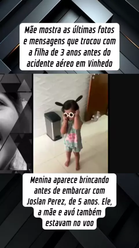 Mãe mostra as últimas fotos e mensagens que trocou com a filha de 3 anos antes do acidente aéreo em Vinhedo: ‘Eu perdi a melhor parte de mim’. Menina aparece brincando antes de embarcar com Joslan Perez, de 5 anos. Ele, a mãe e avó também estavam no voo. #Notícia #ultimasnoticias #voepass #viral #fy