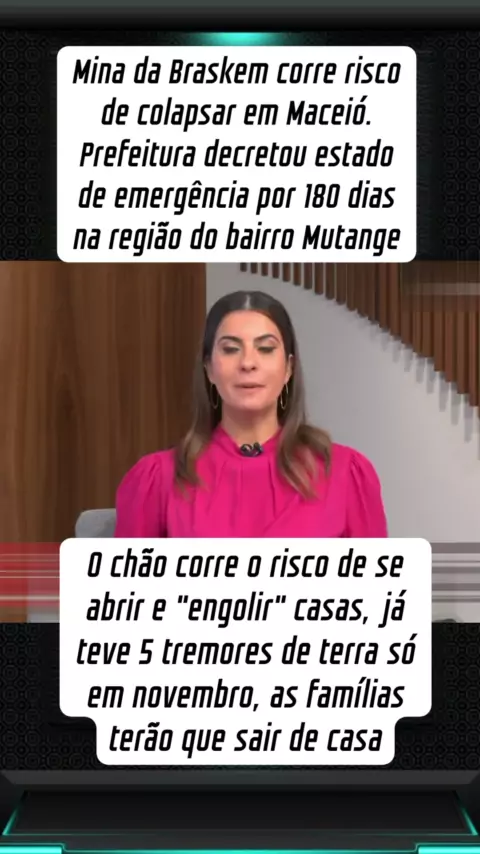 Mina da Braskem corre risco de colapsar em Maceió. Prefeitura decretou estado de emergência por 180 dias na região do bairro Mutange #ultimasnoticias #Informativo #noticiasfamilia