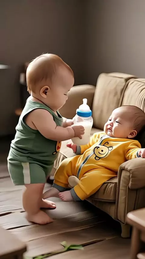 Irmão cuida de si mesmo #Gêmeos crescem juntos #Busca de inspiração de conteúdo #Muito fofo #Bebê fofo