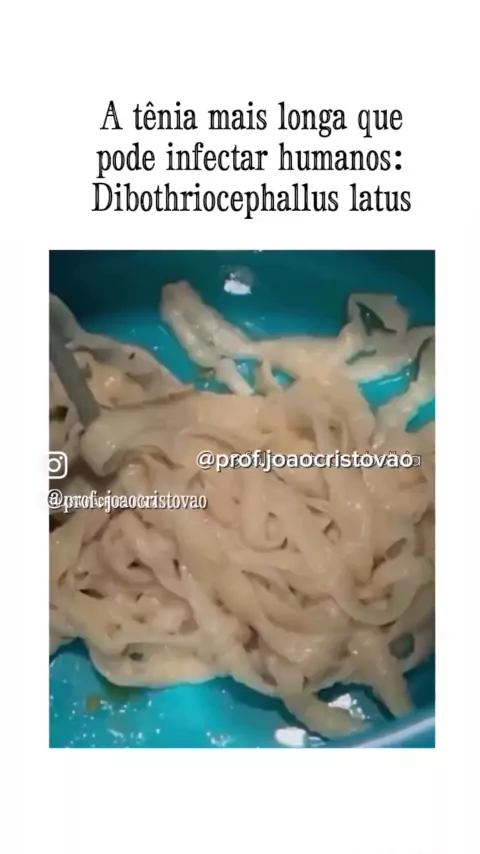 A tênia mais longa que pode infectar humanos: Dibothriocephallus latus Também conhecida como "tênia do peixe" ou "tênia larga", essa parasita pode crescer até 9,2 metros de comprimento! 🪱 Ela é composta por 3.000 a 4.000 segmentos, chamados de proglotes, cada um podendo ter até 2 cm de largura. ⚠️ Como ocorre a infecção? A larva se desenvolve em peixes, e o estágio adulto se desenvolve em mamíferos (incluindo humanos) que consomem peixes contaminados. A infecção é comum em países o