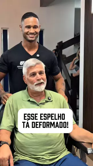 "Eu sou mais bonito do que isso Esse espelho tá me enganando... a prótese capilar é que mostra a minha verdadeira versão."