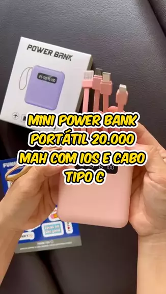 Mini power bank portátil 20.000 mAh com IOS e cabo Tipo C #crescernafaamila